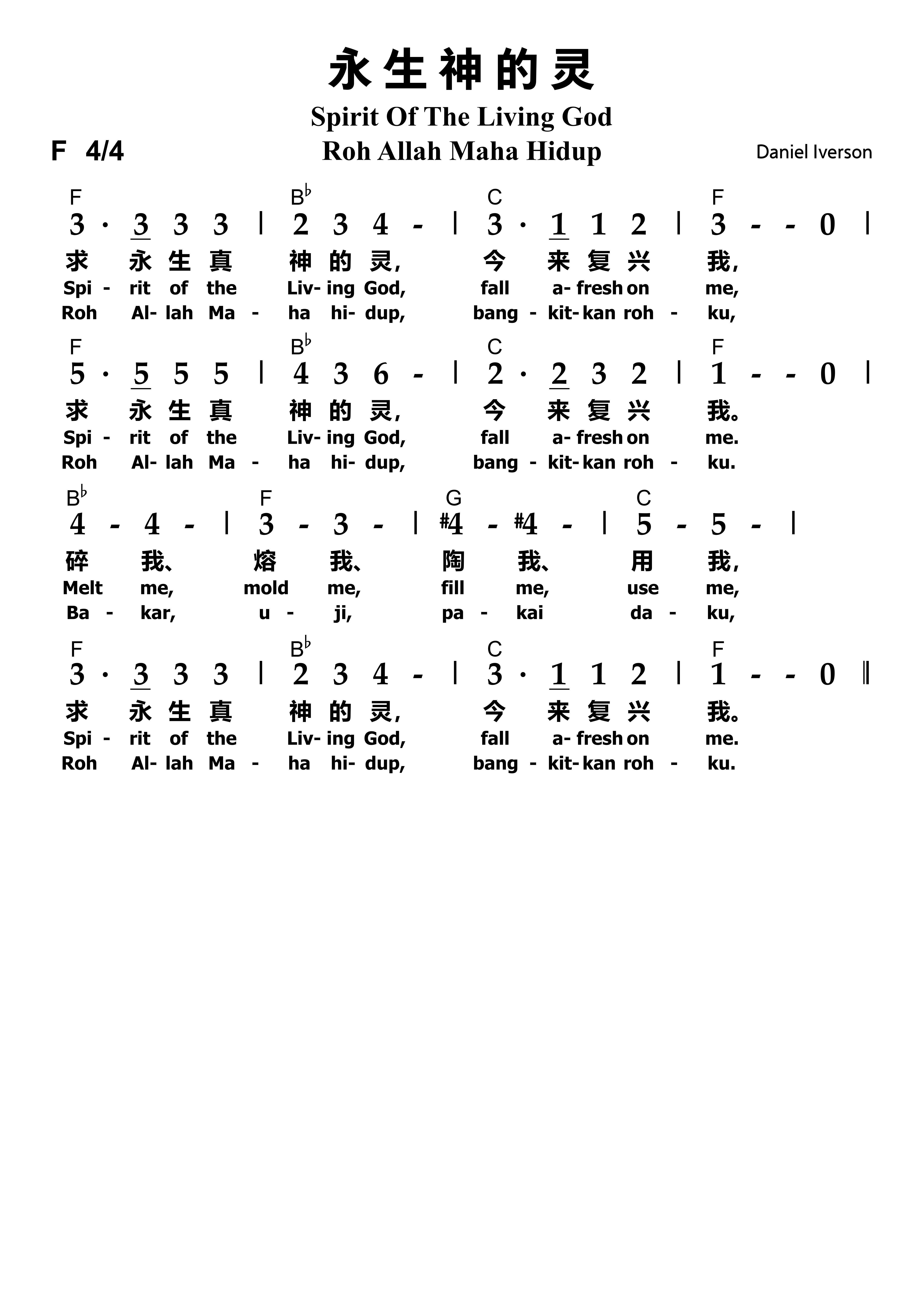歌名: 永生神的灵 | Spirit Of The Living God | Roh Allah Maha Hidup