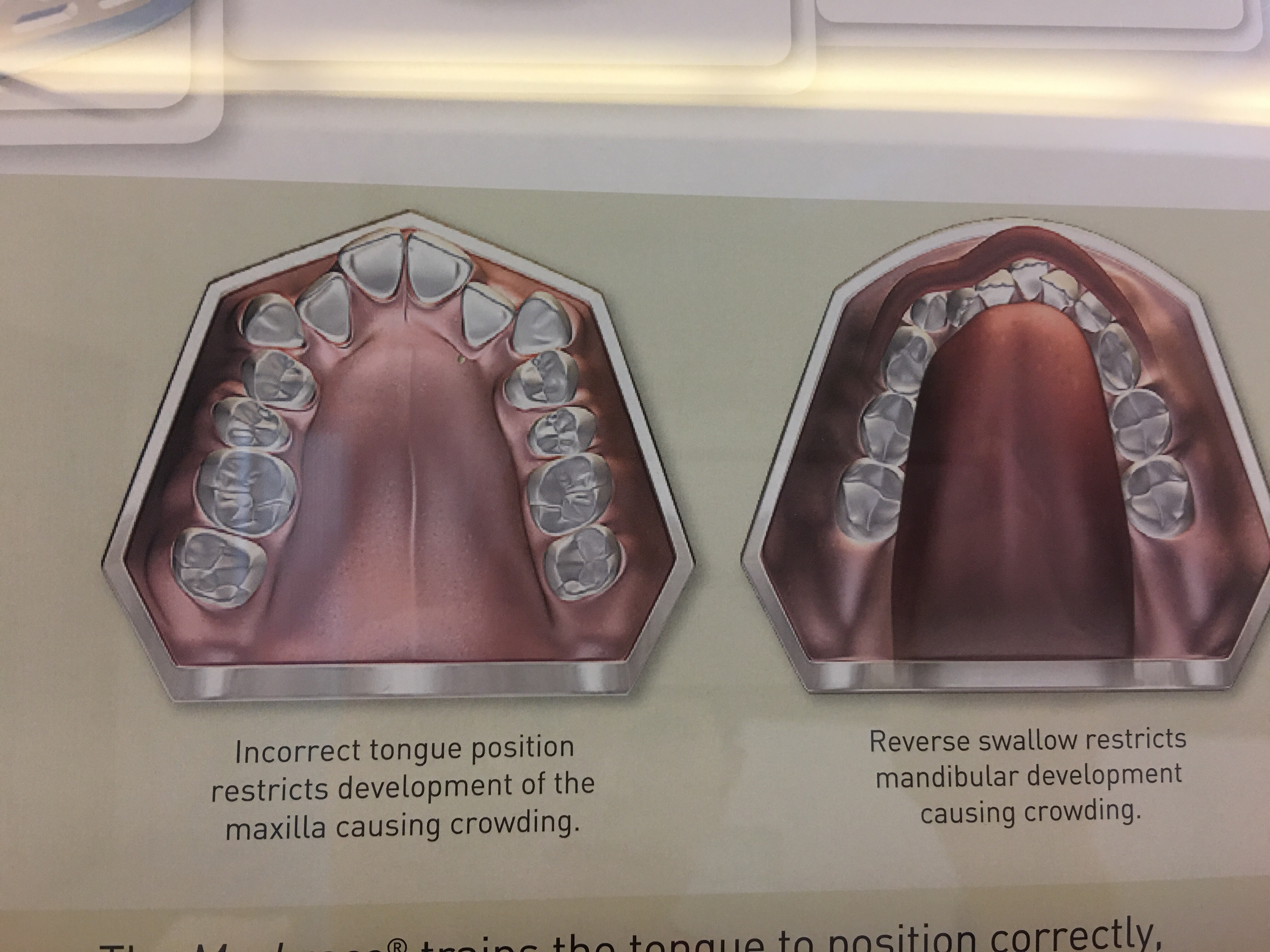 为什么会用口呼吸是因为我们的舌头位子不正确,正确的舌头位子是顶在我们的上颚,而是长期处于下沉状态