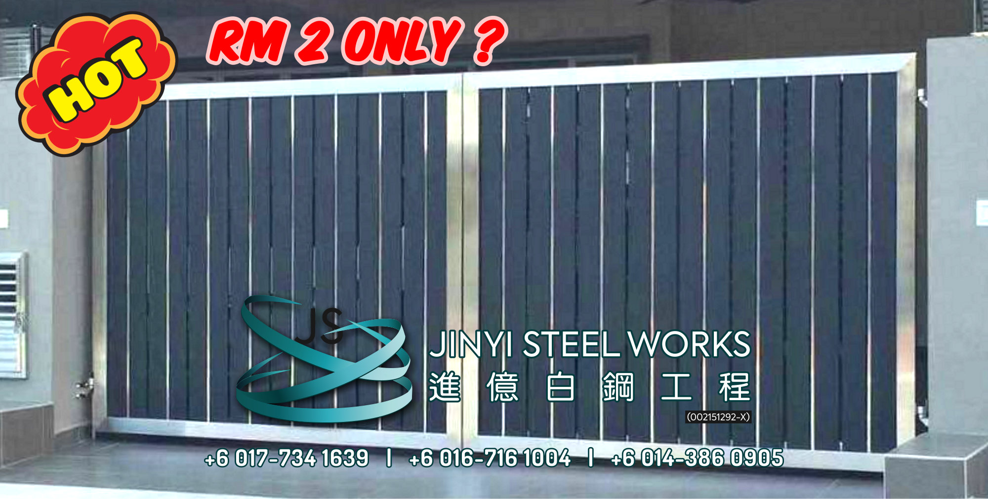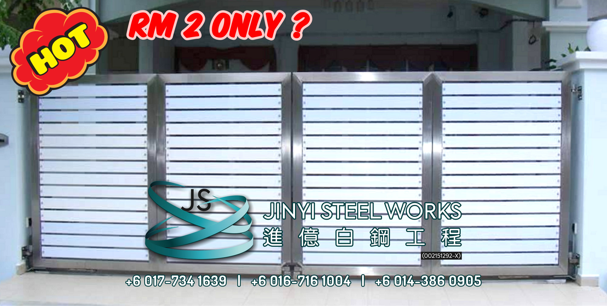 能以 特价 RM2 购置一副 RM4,800 的 12尺的不锈钢篱笆门。